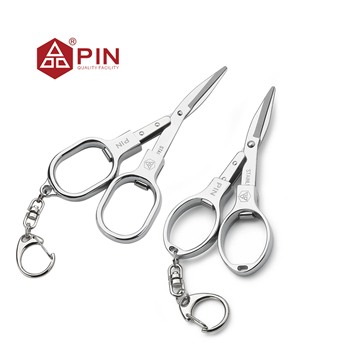 PINホットセールステンレスミニはさみポータブル折りたたみはさみ毎日の切削工具を旅行するための安全性